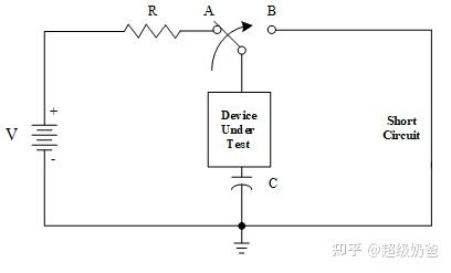 有关于HBM的ESD已有工业测试的标准,为现今各国用来判断IC之ESD可靠度的重要依据。图1.2显示此工业标准(MIL-STD-883C method 3015.7)的等效电路图,其中人体的等效电容定为100pF,人体的等效放电电阻定为1.5KΩ。另外在国际电子工业标准(EIA/JEDEC STANDARD<svg width="10px" height="10px" viewBox="0 0 16 16" class="ZDI ZDI--FourPointedStar16 css-1dvsrp" fill="currentColor">